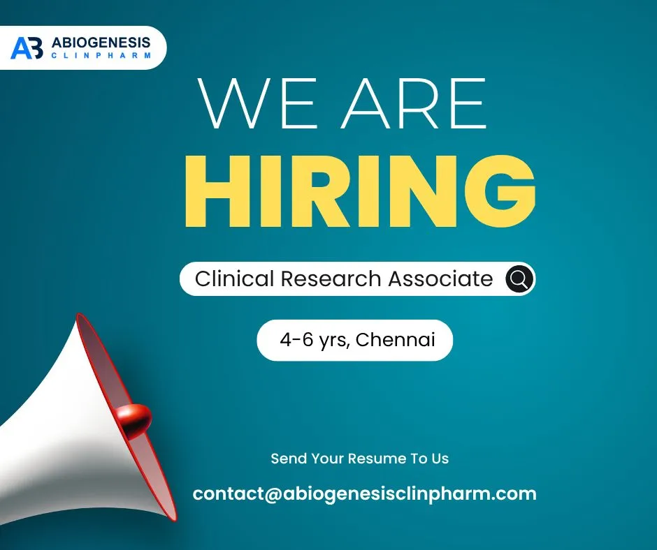 Are you ready to take your clinical research career to the next level? ABIOGENESIS CLINPHARM, a trusted name in the field of clinical research and biopharmaceutical development, is inviting applications for the Clinical Research Associate (CRA) position at its Chennai location. ABIOGENESIS CLINPHARM is Hiring for Clinical Research Associate