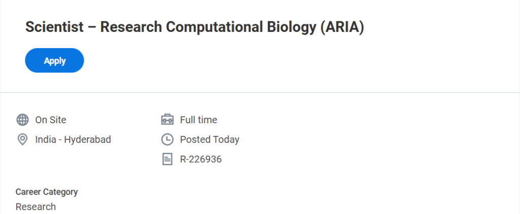 Amgen Hiring for Scientist Research Computational Biology ARIA role in Hyderabad. Explore responsibilities, qualifications, skills, and detailed application process.
