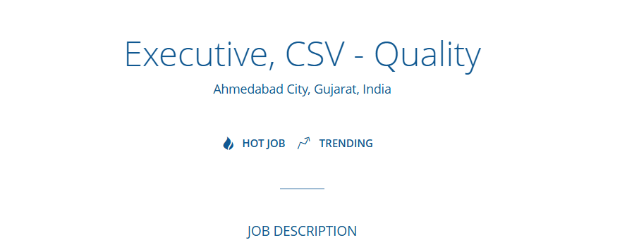 2. Search for the job title “Executive – CSV (Quality)” or use relevant filters for location: Ahmedabad.