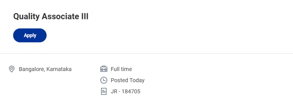 - Open the Quality Associate III job listing for Bangalore.