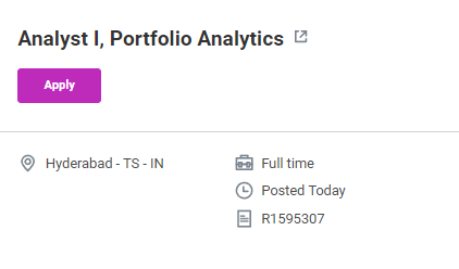 | Job Title | Analyst I – Portfolio Analytics |