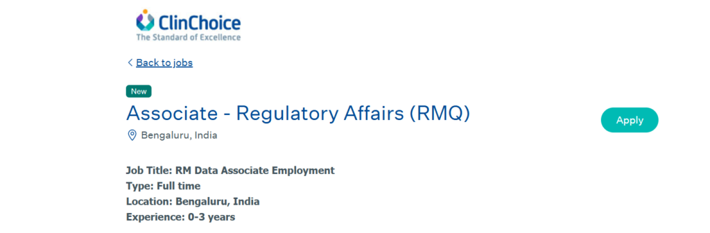 ClinChoice is hiring Associate โ Regulatory Affairs (RMQ) professionals for its Bengaluru location. This opportunity is well suited for freshers and early-career life sciences or pharmacy graduates who want to build a career in global regulatory affairs and raw material data management. ClinChoice Hiring Freshers in Regulatory Affairs