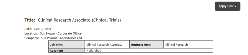 Interested and eligible candidates can apply by visiting the official Sun Pharma careers page. Candidates should prepare an updated resume, highlight relevant clinical research experience, and ensure that all documents are ready for submission.