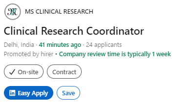 MS Clinical Research is inviting fresh graduates from life sciences, pharmacy, and biotechnology backgrounds to join as Clinical Research Coordinators (CRCs) at its Delhi site. This is a great opportunity for individuals who are passionate about clinical trials and eager to gain hands-on experience in research operations. Clinical Research Coordinator Job at MS Clinical Research