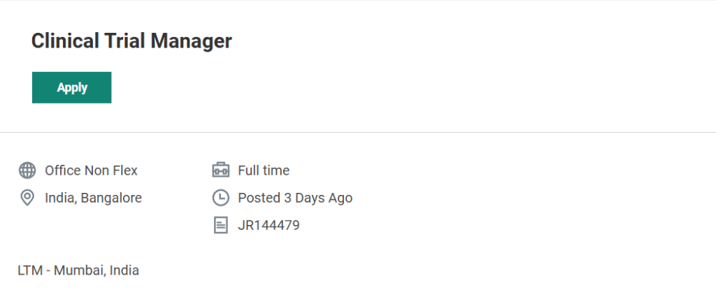 Early application is recommended as the position was recently posted and may close once suitable candidates are identified. Clinical Trial Manager Job at ICON plc
