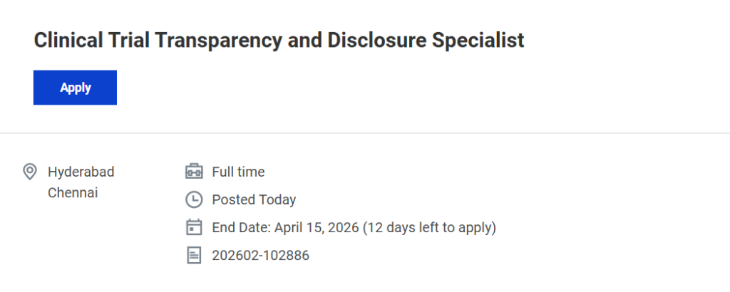 | Job Title | Clinical Trial Transparency and Disclosure Specialist |