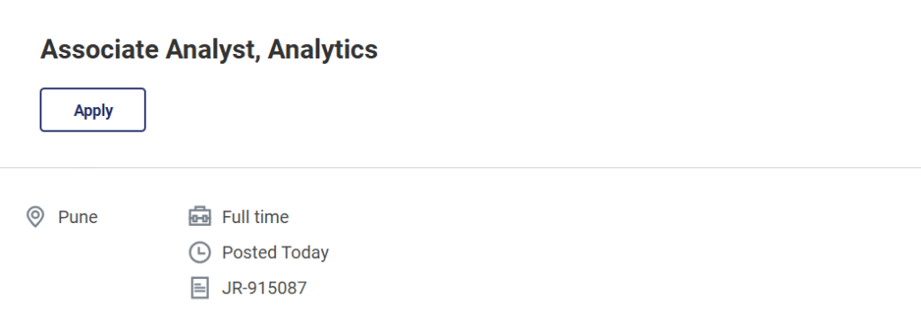 Make sure to search for the role “Associate Analyst, Analytics – Pune (Job ID: JR-915087)” while applying.