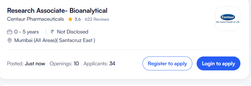 Interested and eligible candidates can apply online through the official Centaur Pharmaceuticals careers portal. Follow the steps below: Fresher job Centaur Pharma Hiring Research Associate Bioanalytical