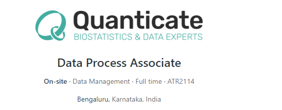 Quanticate hiring freshers for Clinical Data Management in Bengaluru. Apply for Data Process Associate role with 0–6 months experience.