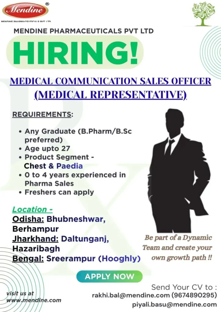 Mendine Pharmaceuticals is offering an excellent opportunity for fresh graduates and early-career professionals to begin their journey in pharmaceutical sales. The company is actively recruiting Medical Representatives across multiple states, making this a great entry point into healthcare marketing. If you are looking to build a career in pharma sales with strong growth potential, this role is worth exploring.
