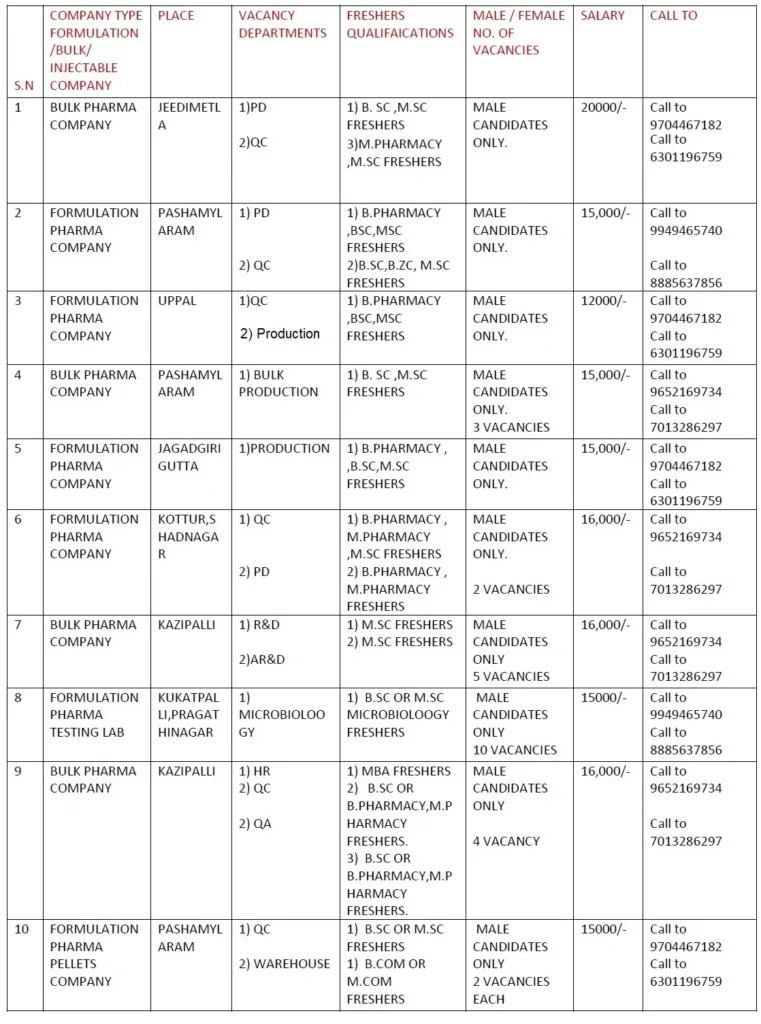 - Opportunities for freshers to start their career in the pharmaceutical industry.