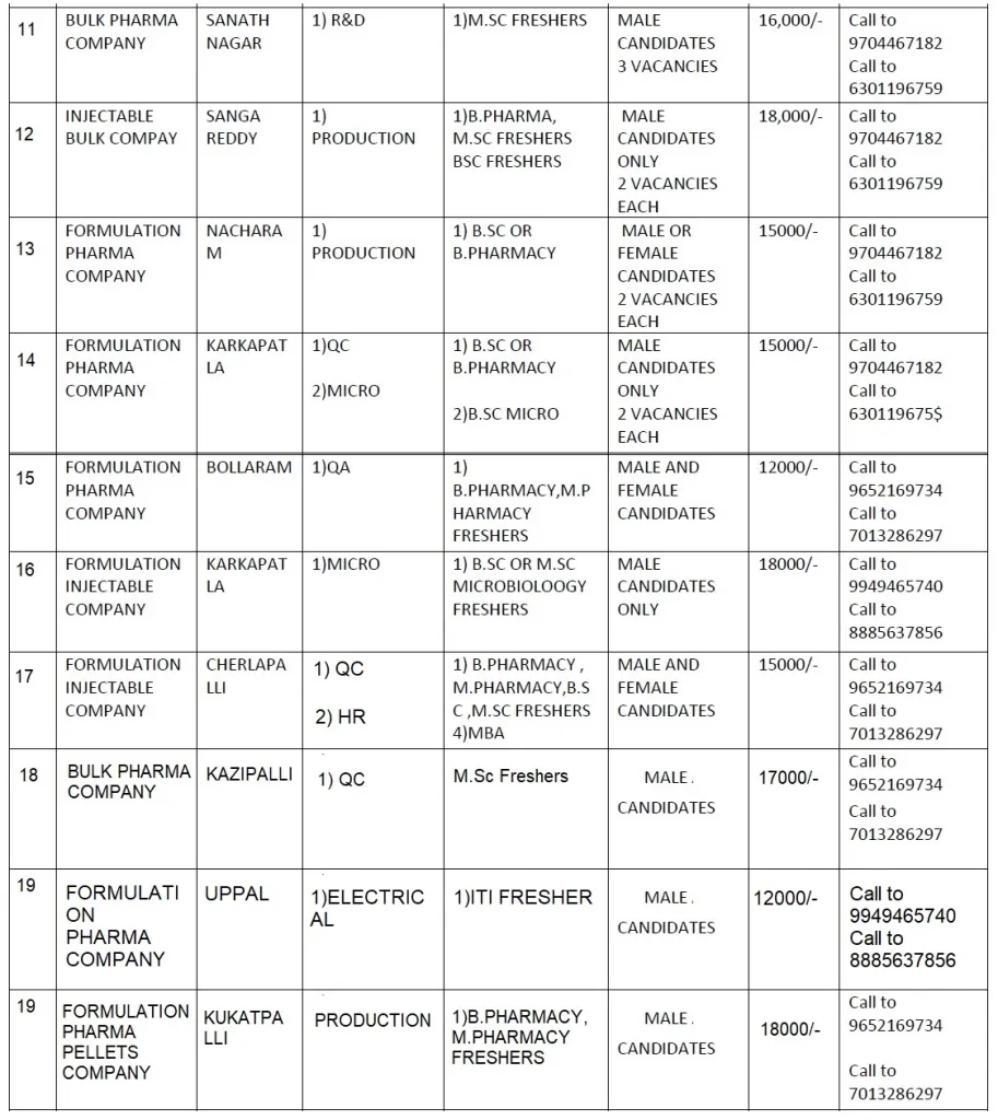 Candidates can apply for openings in the following departments: Freshers Job Openings in Hyderabad