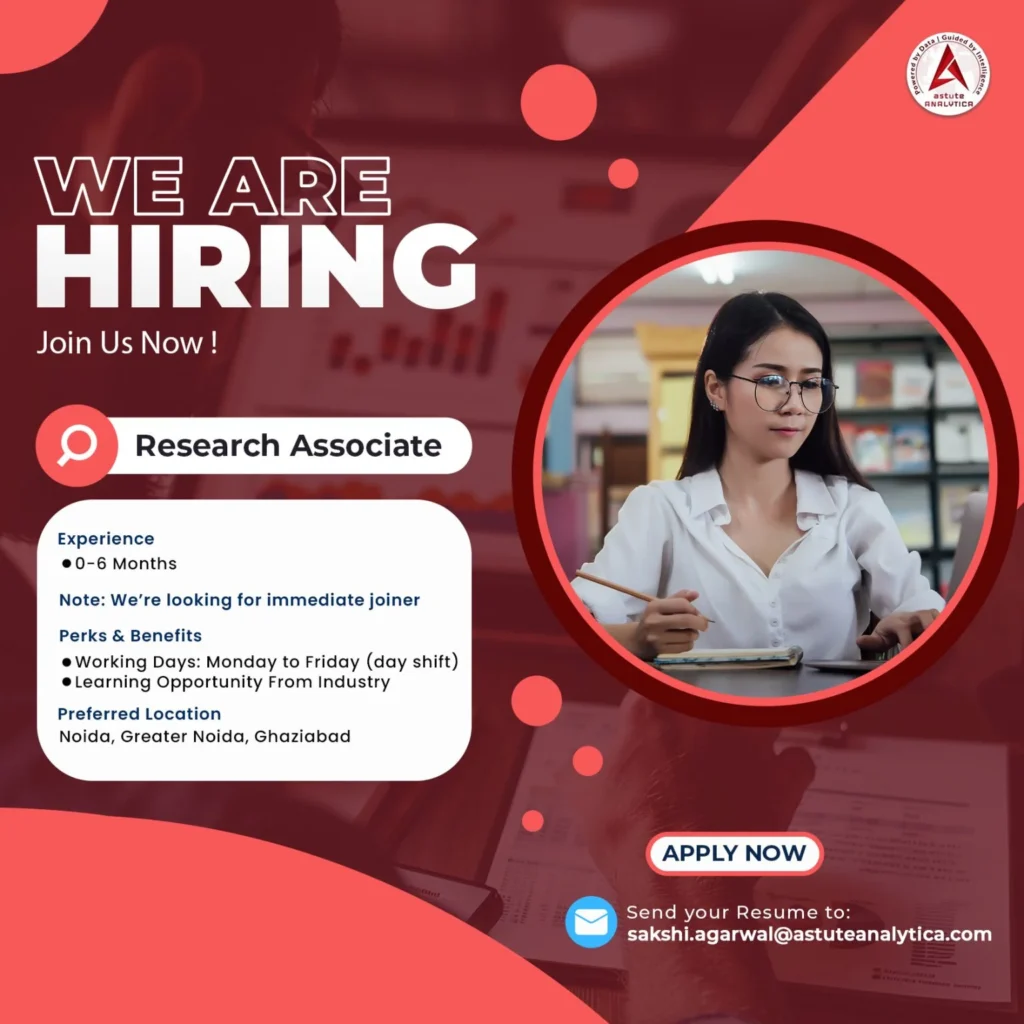 Astute Analytica, a fast-growing global market intelligence and consulting firm, is hiring Research Associates โ Market Research for its offices in Noida, Greater Noida, and Ghaziabad.