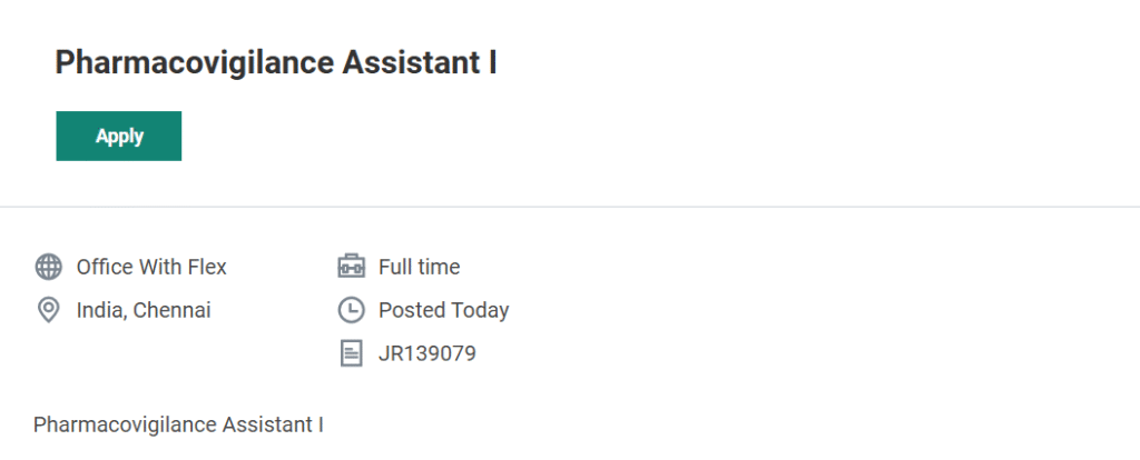 This position is particularly suitable for fresh graduates or early-career professionals looking to transition into pharmacovigilance. ICON Hiring for Pharmacovigilance Assistant I