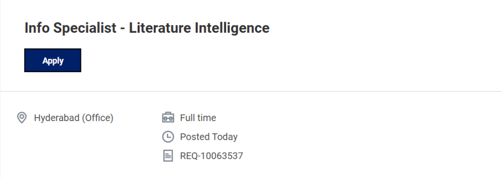 This role plays a critical part in supporting regulatory submissions, health authority responses, formulary reviews, and internal knowledge dissemination through accurate, timely, and relevant literature intelligence. Info Specialist Literature Intelligence Job in Hyderabad