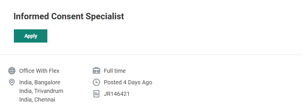 Apply for Informed Consent Specialist job at ICON plc India. Check eligibility, salary, responsibilities, and application process details today.