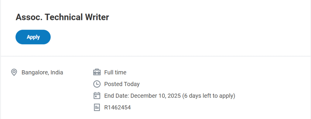 | Job Role | Associate Technical Writer |