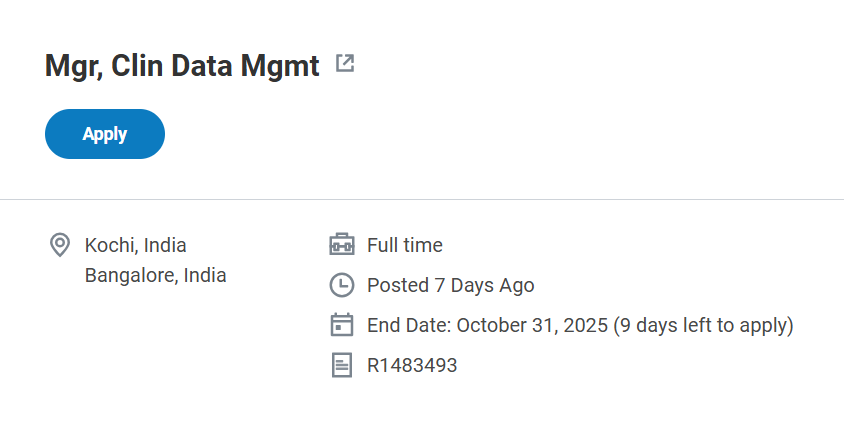 IQVIA Hiring for Manager Clinical Data Management in Kochi and Bangalore. Candidates with 7+ years of experience in Data Management can apply before October 31, 2025.