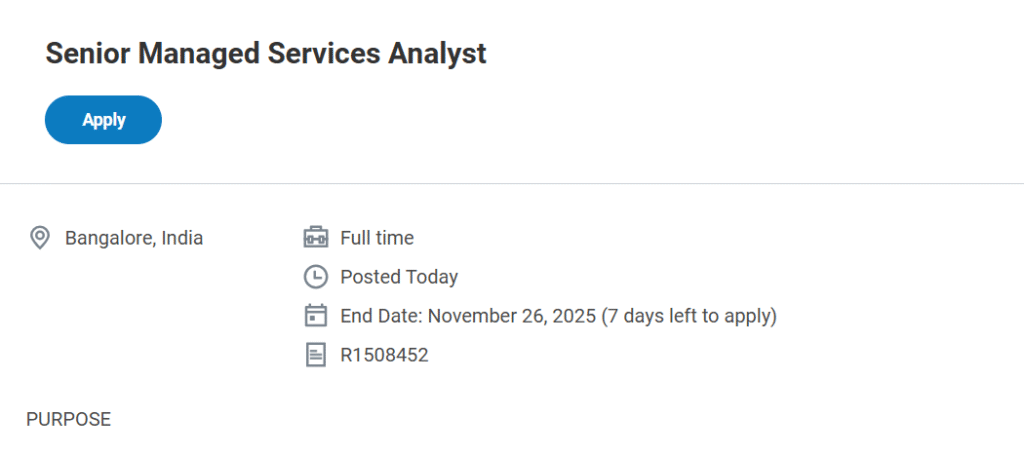 IQVIA, the global leader in healthcare intelligence, analytics, and clinical research solutions, has announced a new opening for the post of Senior Managed Services Analyst. This full-time position is based in Bangalore, India, and is a critical role within the US Support and Operations team. The vacancy has been posted today, and eligible candidates must apply before the end date of November 26, 2025. IQVIA Hiring for Senior Managed Services Analyst