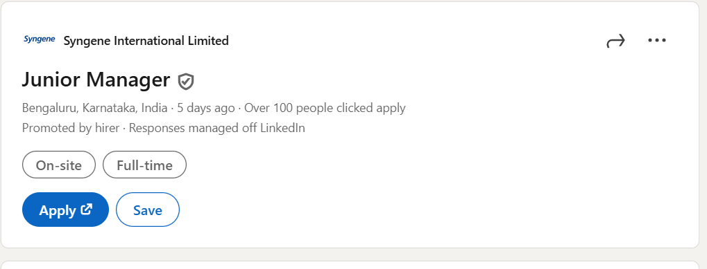 Interested candidates should apply online through the official Syngene International careers portal. Junior Manager Analytical QA job in Bengaluru