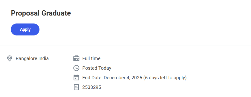 3. Open the job listing titled “Proposal Graduate – Bangalore, India.”