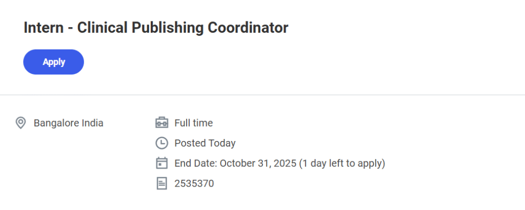 Labcorp’s India operations, especially in Bangalore, play a vital role in data analytics, study management, and publication coordination for global clinical trials. Labcorp Hiring Intern Clinical Publishing Coordinator