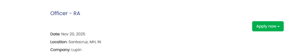 Lupin Limited, one of India’s leading pharmaceutical companies, has announced a new opportunity for freshers and early-career professionals seeking to build a career in Regulatory Affairs (RA). The opening for the position of Officer – Regulatory Affairs at the Santacruz, Mumbai location is an excellent starting point for candidates who want to work in global regulatory submissions, dossier compilation, labeling activities, and product launch documentation. Lupin Hiring Freshers as Regulatory Affairs Officer