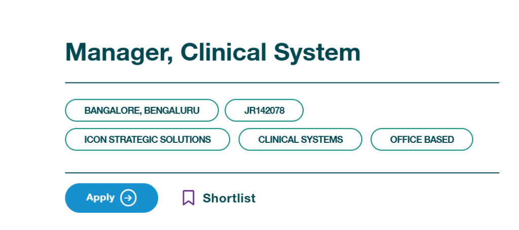 Interested candidates can apply directly through the official ICON careers portal. Manager Clinical Systems Job at ICON plc