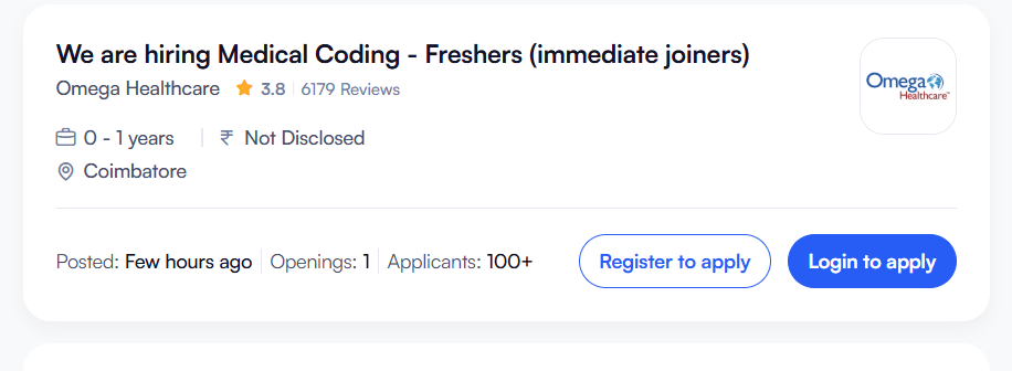 Omega Healthcare is hiring Medical Coding Freshers for its Coimbatore facility. This opportunity is ideal for candidates from pharmacy, life sciences, nursing, and medical backgrounds who want to begin their career in medical coding and healthcare documentation. Medical Coding Jobs for Freshers at Omega Healthcare
