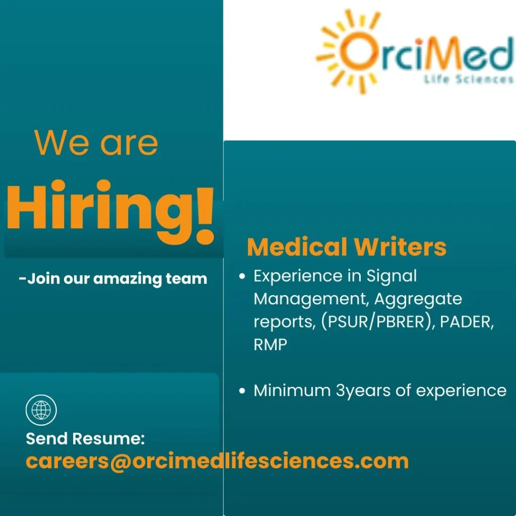 Medical Writer Jobs at OrciMed Life Science Hyderabad for experienced pharmacovigilance professionals in signal management and regulatory safety writing roles.