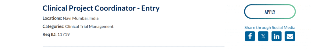 - Search for Job ID 11719 – Clinical Project Coordinator (Entry Level), Navi Mumbai.