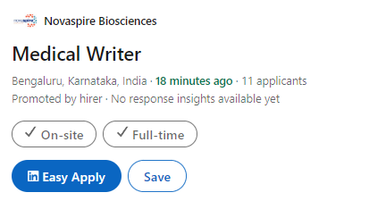 Novaspire Biosciences, a leading name in pharmaceutical research and scientific communication, is inviting experienced professionals to join as Medical Writer at its Bengaluru office. Novaspire Biosciences Hiring for Medical Writer