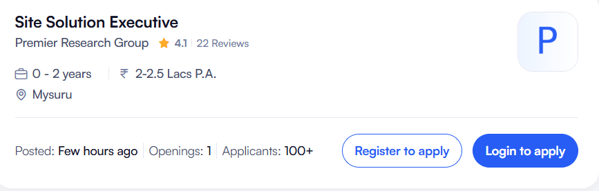 - Search for the job title “Site Solution Executive – Mysore” or relevant keywords.