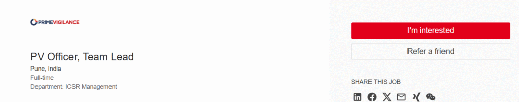 The company believes that “people are our greatest strength.” Employee well-being, mental health, and a healthy work-life balance are central to its values. PrimeVigilance invests heavily in professional development, providing extensive training opportunities and career growth paths for its team members. PrimeVigilance Hiring for PV Officer / Team Lead