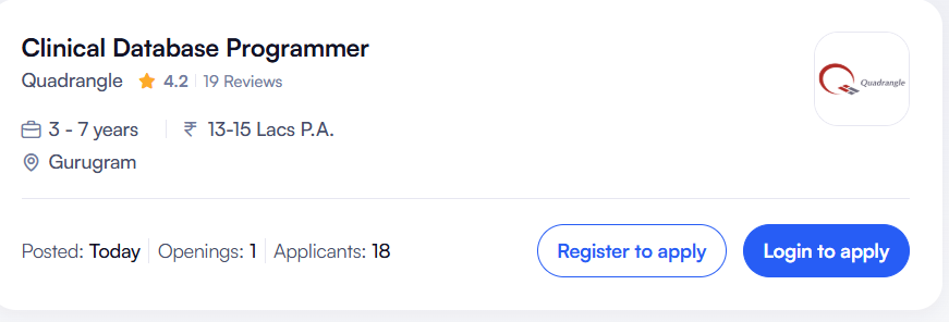 For this specific opening, Quadrangle is hiring on behalf of a major organization engaged in clinical research, data science, and digital healthcare solutions. Quadrangle Hiring for Clinical Database Programmer