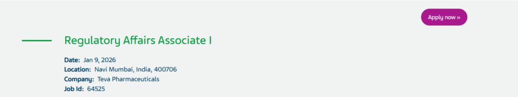 Regulatory Affairs Associate I Jobs at Teva Pharmaceuticals Navi Mumbai with eCTD publishing exposure and global regulatory career growth