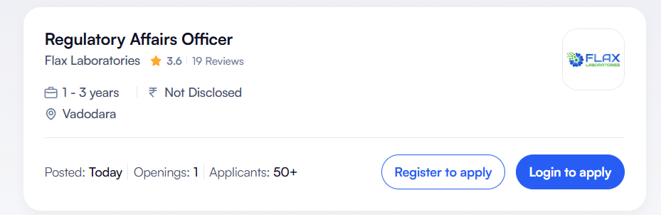Apply for Regulatory Affairs Officer at Flax Laboratories Vadodara. Check eligibility, experience, licensing work, salary details and apply online now today.
