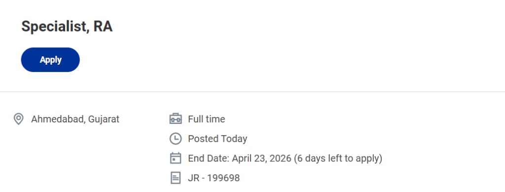| Job Title | Specialist โ Regulatory Affairs (RA) |
