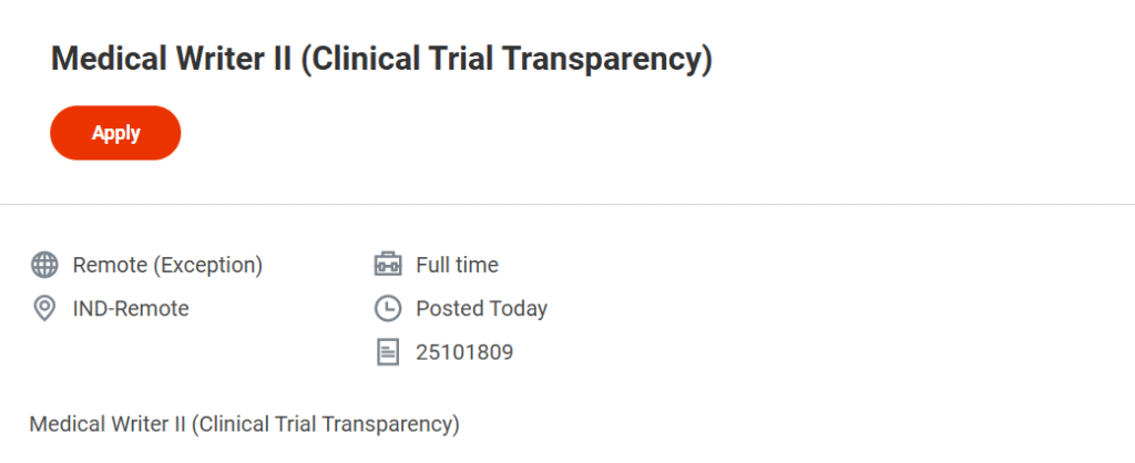 - Position: Medical Writer II (Clinical Trial Transparency)