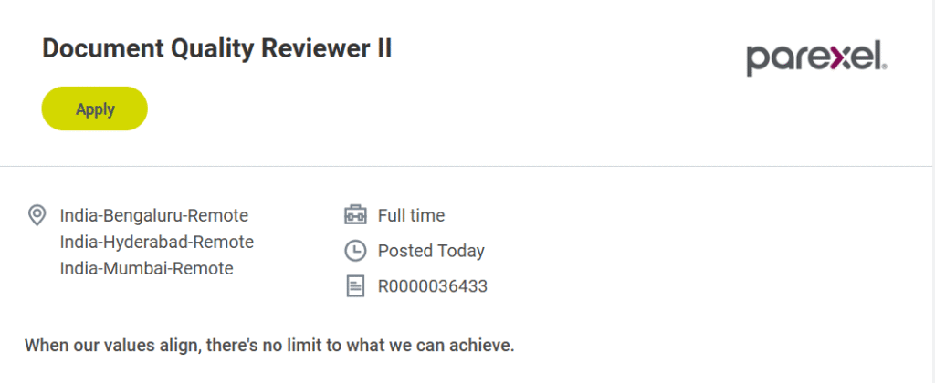 How to Apply for Parexel Document Quality Reviewer II Jobs in India