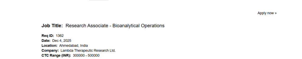 Interested and eligible candidates can apply through the official Lambda Therapeutic Research careers portal or through job postings referencing Req ID: 1362. Research Associate Bioanalytical Operations at Lambda Therapeutic Research