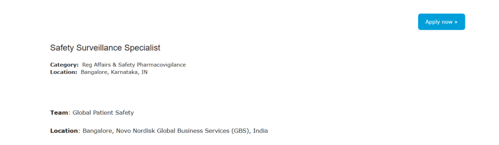 The Safety Surveillance Adviser team is part of Global Patient Safety and is based in Bangalore, India. The team is responsible for monitoring, evaluating, and communicating the safety profile of Novo Nordisk products throughout their lifecycle. Safety Surveillance Specialist Jobs