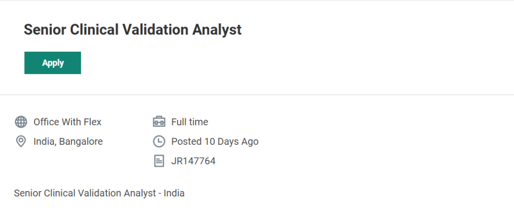 Job TitleSenior Clinical Validation Analyst