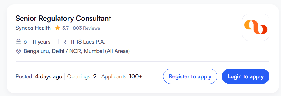Interested candidates should apply through the official careers portal of Syneos Health. Ensure your resume clearly highlights your regulatory experience, CMC knowledge, and global submission exposure.