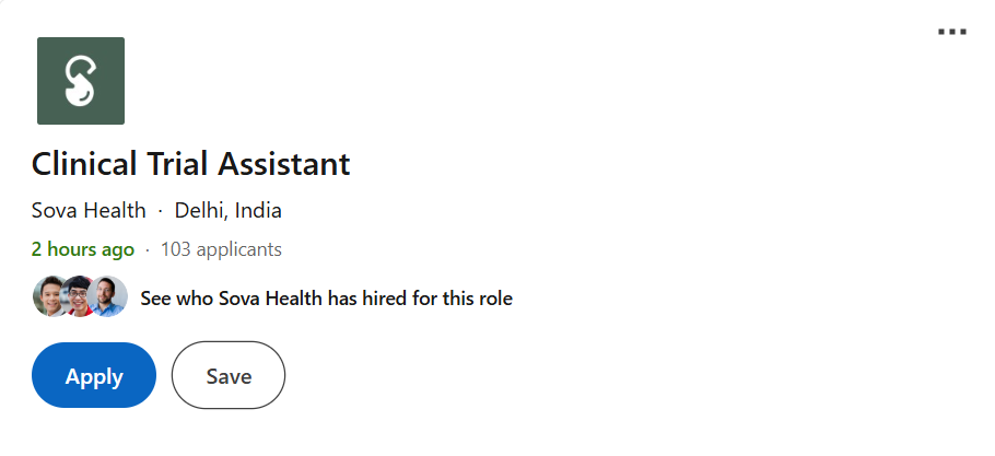 Sova Health Hiring for Clinical Trial Assistant positions in Delhi. Apply now for exciting clinical research career opportunities.
