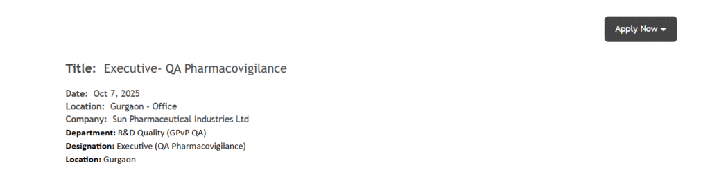 Interested candidates who meet the eligibility criteria can apply online through the official Sun Pharma Careers Portal or via the direct link mentioned in the company’s recruitment notice. Sun Pharma Hiring for Executive QA Pharmacovigilance