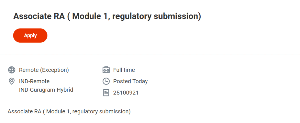 Position: Associate – Regulatory Affairs (Module 1 & Regulatory Submission)