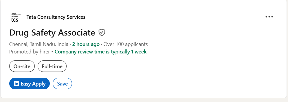 Tata Consultancy Services (TCS), one of India’s largest and most trusted IT and business solution providers, is inviting applications for the position of Pharmacovigilance (PV) Drug Safety Associate. This is a promising opportunity for candidates who have experience in the field of drug safety and are looking to advance their career with a globally recognized organization. With steady growth in healthcare projects and increasing demand for patient safety services, TCS is expanding its team and seeking skilled professionals to contribute to ongoing pharmacovigilance processes. TCS Pharmacovigilance Hiring for PV Drug Safety Jobs