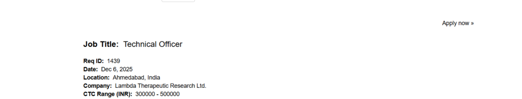 Interested candidates who meet the educational and experience criteria can apply by following the steps below: Technical Officer Job at Lambda Therapeutic Research