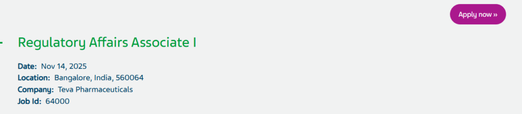 With a diverse workforce and a culture that encourages collaboration, growth, and global impact, Teva offers an excellent environment for pharmaceutical professionals seeking to advance their careers in regulatory affairs. The Bangalore site is a major hub supporting global regulatory operations, including Europe and various international markets. Teva Pharma Hiring for Regulatory Affairs Associate I